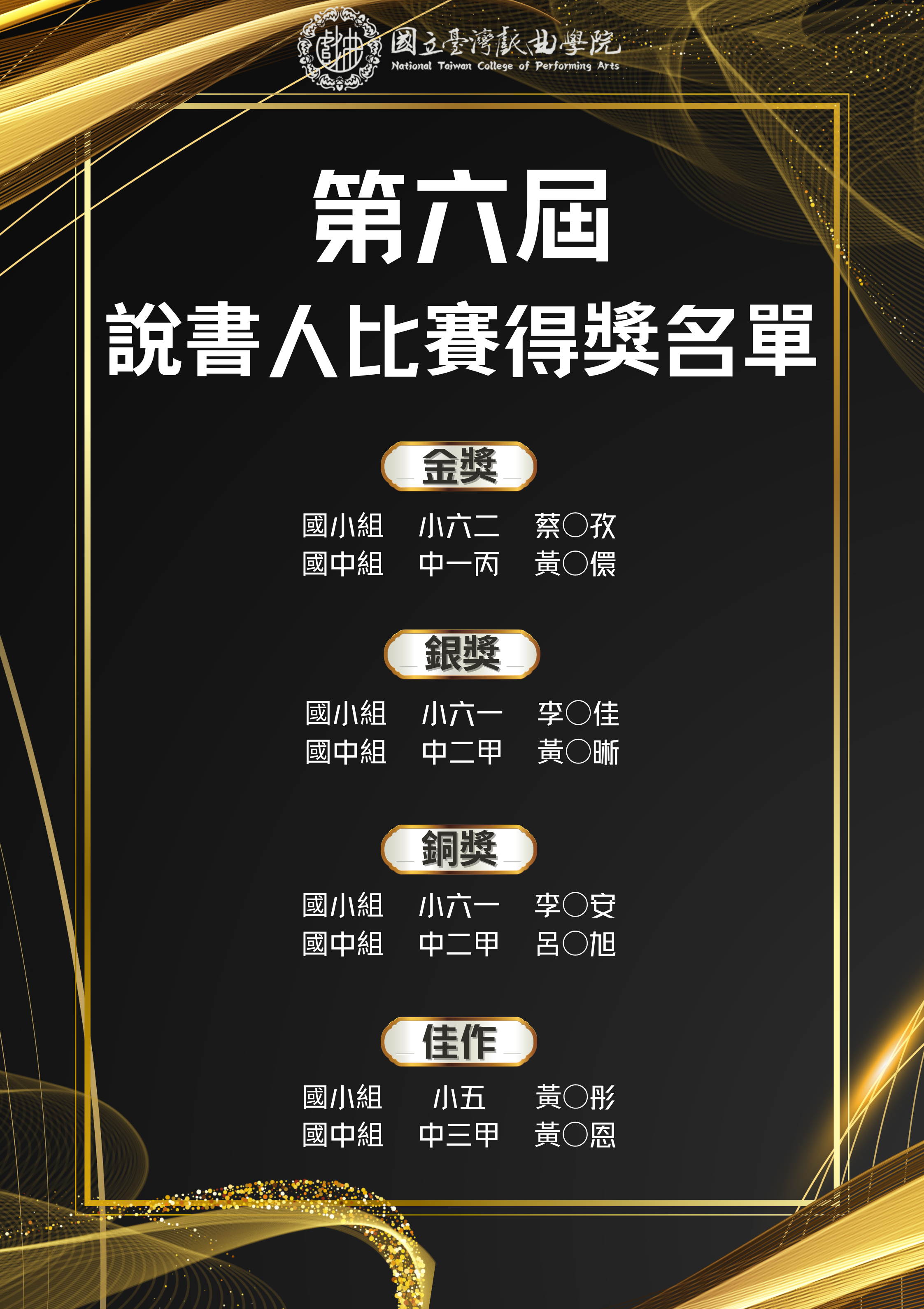 | 10 | 國小部 | 京劇學系 | 小六一 | 陳◯樺 | 國小組 | 參加獎 |